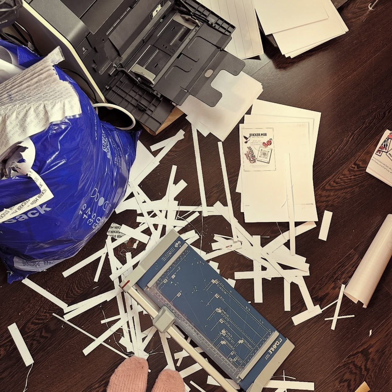 auf grad so vorhandenem Material, mit Liebe geschnitten, verpackt und dann an den Kundgebungen verteilt oder über Instagram und nun, ta-da-, der neuen Seite hier versendet,